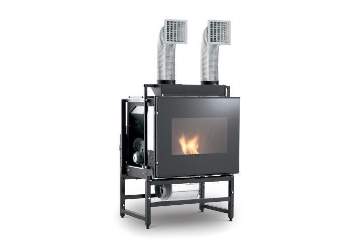 I caminetti misti legna/pellet sono disponibili con sistema di riscaldamento ad aria o ad acqua, e in varie dimensioni e potenze.